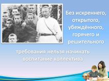 Антон Семёнович видел в каждом ребёнке положительное, большие возможности и творческое начало, которое при правильном воспитании всегда возьмёт верх.